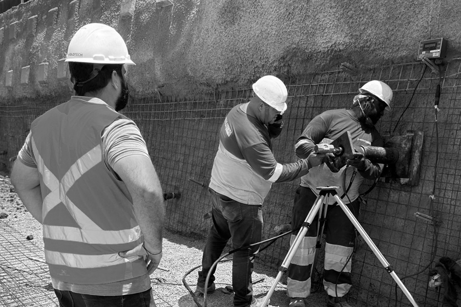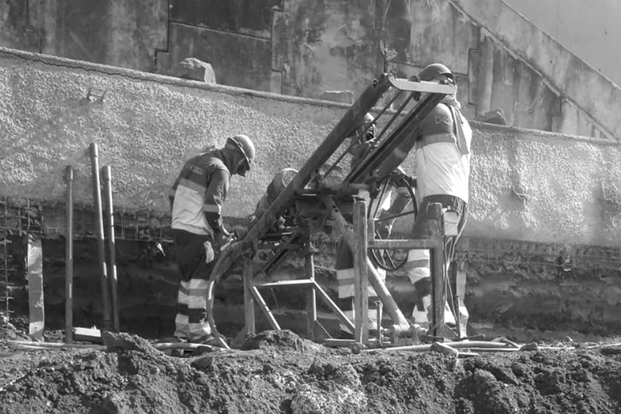 Utilizando-se de conjunto macaco bomba hidráulico, aplica-se uma carga de tração nos grampos em estágios pré-definidos, fundamental para aferição da capacidade de carga real da ancoragem, a título de confirmação das considerações feitas em projeto.