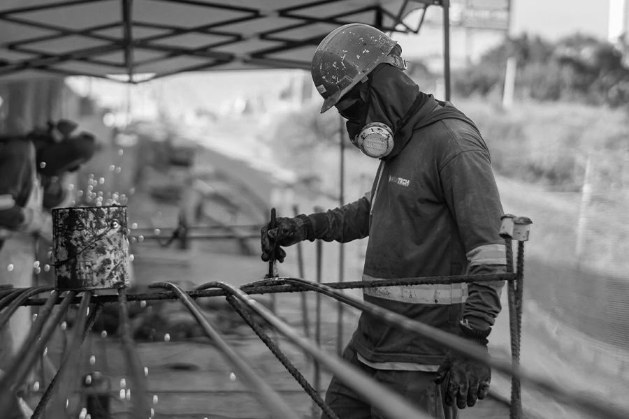Montagem dos grampos espaçadores, aplicação de tinta anticorrosiva e tubos de injeção.