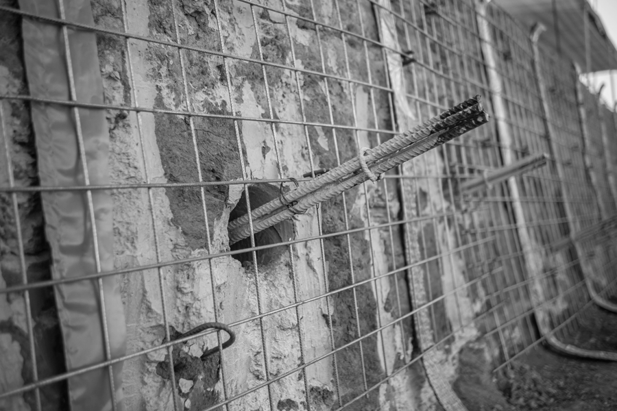 Aplicação de Tela Eletrossoldada com espaçadores para projeção de concreto.
